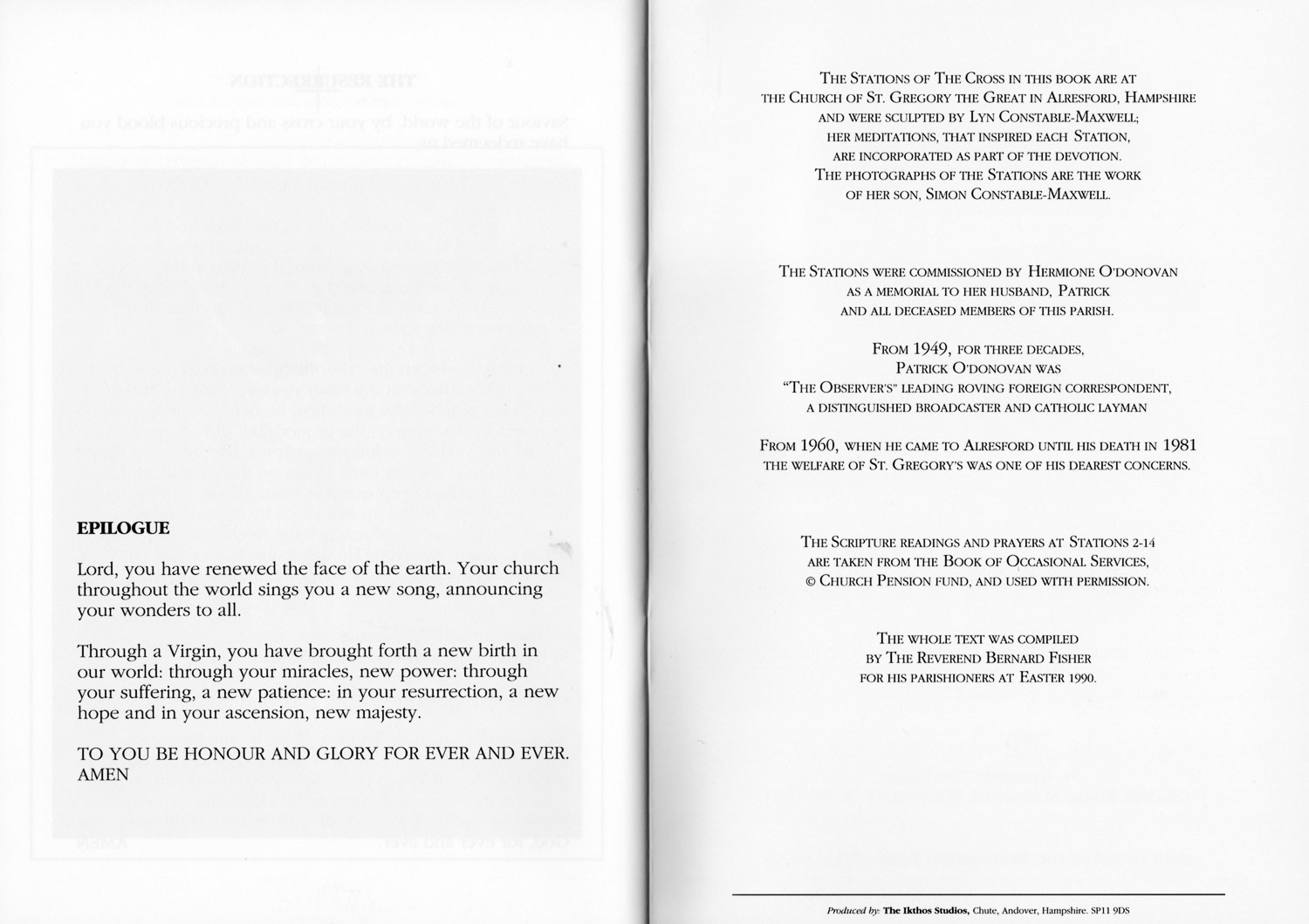 "The Way of the Cross" booklet produced to accompany Lyn's installation of Stations of the Cross relief sculptures at St Gregory's Church, Alresford, Hampshire. Please click for enlarged view.